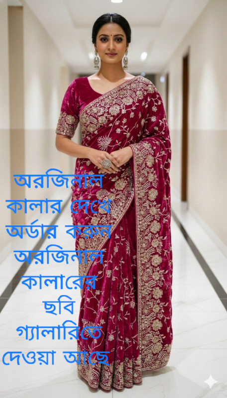 💎 শাড়ির জমিন জুড়ে নিখুঁত এমব্রয়ডারির কারুকাজ আর প্রিমিয়াম স্টোনের ঝিলিক… 💎